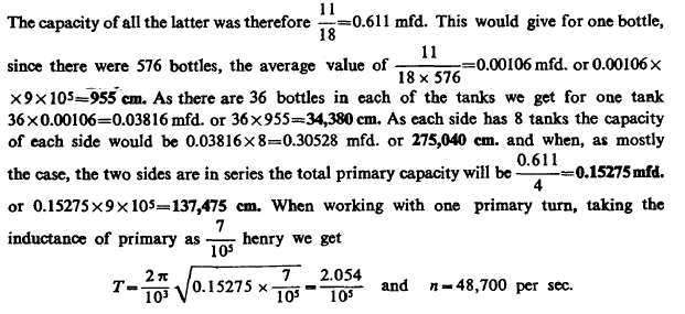 In this case the secondary S was closed by the condenser C too large for it, and the self-induction (very large) L was inserted to overcome this defect and for other reasons (2).