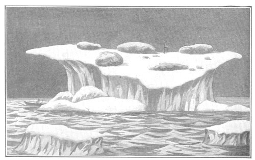 Some writers assign one cause, some another; each, however, refutes or rejects what his predecessors have explained of the presence of these substances. To me they appear of volcanic origin. Volcanic eruptions send into the air rock, gravel, sand, and dust, which disperse in every direction. Finally they fall upon the bergs at all stages of formation, from the time the stream first freezes over until a berg is plunged into the ocean, and afterward,--if still in the location where they land. When rock is found on an iceberg, it is stated that it generally rests in a pool of water, caused, it is claimed, by the rock drawing heat from the sun. This does not seem nearly so good an explanation as the one that a warm rock lighting upon an iceberg melts the ice, and makes a pool of water very quickly, there being no need to wait for the sun, which may not appear for several months.