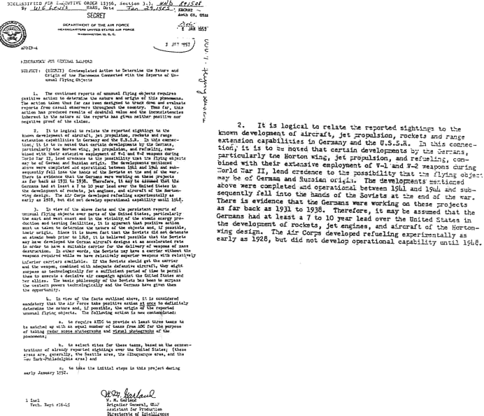 Left, U.S. Air Force document, Jan. 3, 1952 Right, blowup of the second paragraph Index |