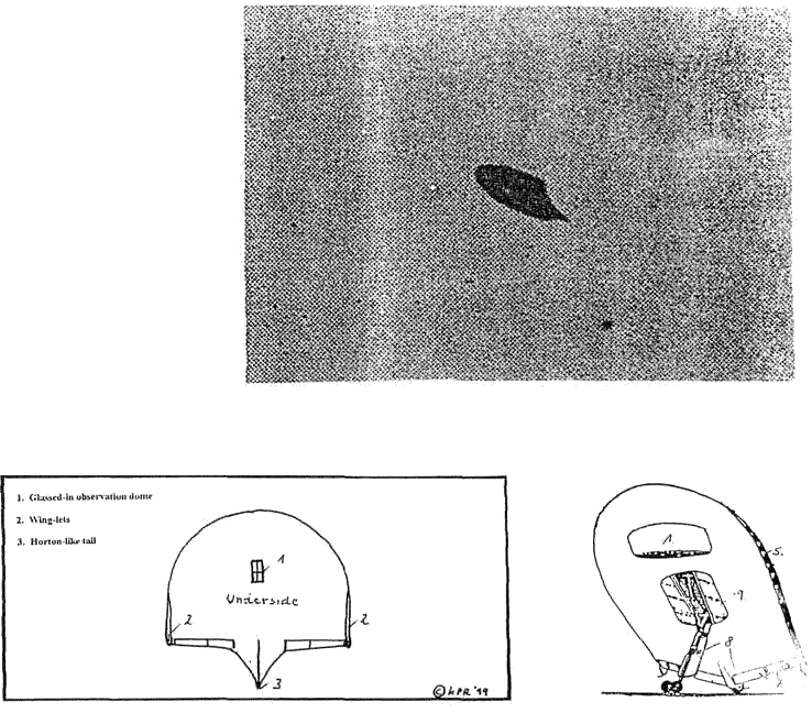 Top: a picture from the July 9, 1947 edition of theArizona Republic taken by William A. Rhodes as it flew over his home in Phoenix. Lower Left: a drawing of thecraft by Klaus-Peter Rothkugel. Lower Right: one view of the Avro Frost-Manta design, predating the Silver BugProject. Was this a captured Miethe-Belluzzo-Leduc saucer? Sources and References