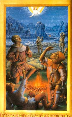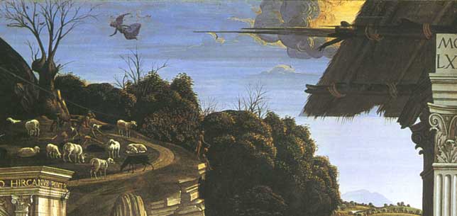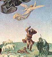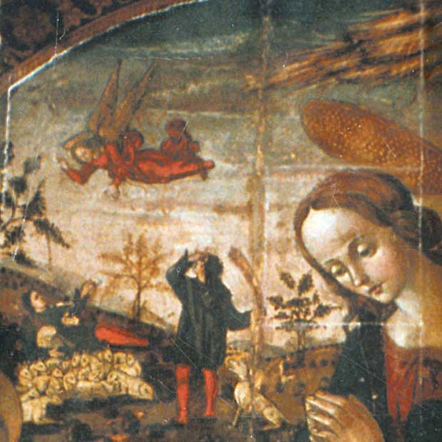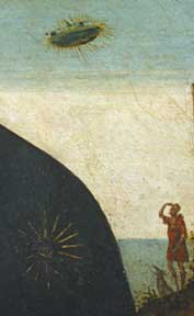 Returning to the above mentioned detail, the one that was interpreted as an UFO, we see that it is to be found in a great many "Nativities" of the '400 and '500. It is but the announcement to the shepherds, as told in St. Luke's Gospel: