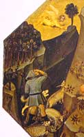 This is the painting that more than any other has sparked discussions among ufologists, who see in the upper-right scene behind the Madonna the proof of a "close encounter" with an un-identified flying object. In the above mentioned scene we see a character keeping a hand to his forehead and looking towards an apparition in the sky. With him there is a dog, which also looks towards the strange object.