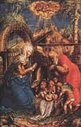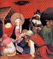 The depiction of the cloud alone, without the Angel, is rare, but one example can be seen in a painting by Master Franke, on the Adoration of the Child. This same author elsewhere shows God Himself within the cloud, while an angel makes the announcement to the shepherds: