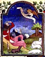 «...and there were in the same country shepherds abiding in the field keeping watch over their flock by night. And lo, an angel of the Lord come upon them, and the glory of the Lord shone round about them: and they were sore afraid. And the angel said unto them, Fear ye not: for behold!, I bring you good tidings of great joy, which shall be to all people. For unto you was born this day in the city of David a Savior, which is Christ the Lord...»