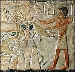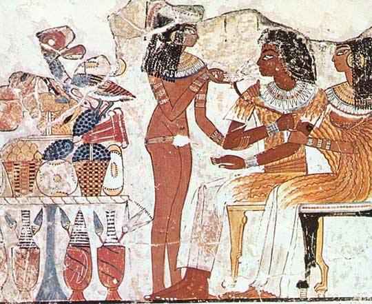 Altri vasi simili a quello scambiato per un alieno si possono vedere nei dipinti che raffigurano il banchetto rituale offerto agli dei in molte altre tombe egizie. Questo è un particolare dei famosissimi affreschi della tomba di Nebamun (Londra, British Museum):