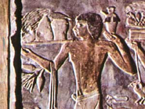 Nel rilievo dipinto della tomba di Ptahhotep a Saqqara non ci sono "alieni grigi" con minacciosi occchi a mandorla. La foto pubblicata in tante pagine web raffigura l'offerta di doni per il banchetto degli dei. In particolare gli occhi del presunto "alieno" sono le foglie di una pianta che esce da un vaso.