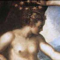 Nel dipinto di Tiziano intitolato "Bacco e Arianna" non ci sono UFO. Il cerchio di stelle nel cielo rappresenta la corona di Arianna che, nel racconto mitologico, viene trasformata nella costellazione della "Corona Borealis".