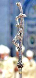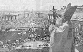 traditional regalia of the Papacy, waved to the faithful stalwarts.