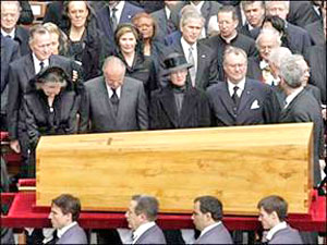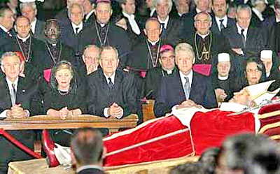 Clinton (in black) with Pope John Paul II (dressed in white)