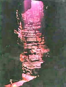 larga escalera ascendente conduce hacia un nuevo pasadizo superior,