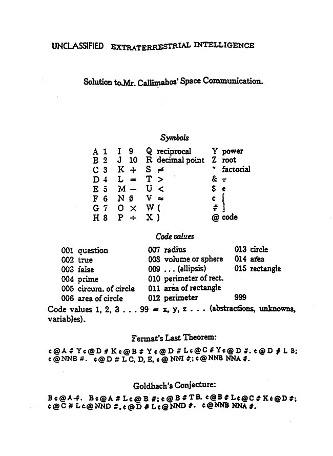 Beginning with transmission (22), words and word-cluster concepts are introduced, so that by the time we come to transmission (30), we now are understanding, in a manner of speaking, pure Venerean. Furthermore, we can now see how we could recover the code they are using on us, and which will obviously consist of thousands upon thousands of code groups with different meanings; this is easily appreciated by anyone who takes the trouble to fathom the meaning of all 30 transmissions in the foregoing example.4