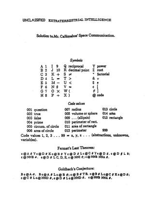 In the first twenty transmissions there are introduced symbols for the introductory expository treatment in teaching us their mathematics. Among the items treated are: addition, subtraction, multiplication, and division; decimal notation and the concept of zero; inequalities and approximation; powers and roots; and definitions of π and ℮. Transmission (21) adds nothing new to the 31 symbols recovered thus far, but it does quote one of the most beautiful concepts in pure mathematics: they are telling us that, if they can teach us such a complex notion at this early stage, we will be staggered by what they will teach us by the 200th or the 2000th transmission.