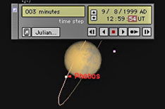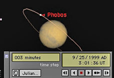 We rebut with the following images posted below. These are chart displays from "Starry Night", an astronomy software program, showing the positions of Mars and Phobos over Mars at the exact times printed on the above images. The view is as if you were standing on the sun.