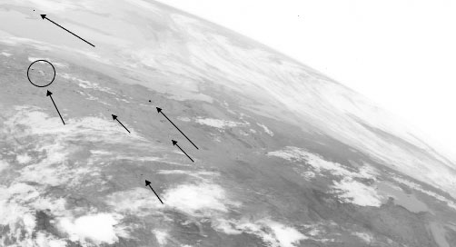 out over Canada. The objects can be seen to be 'above' the clouds,