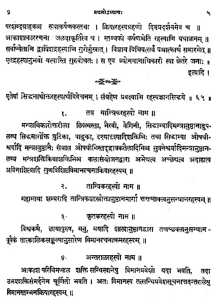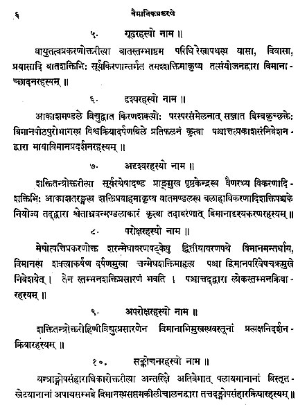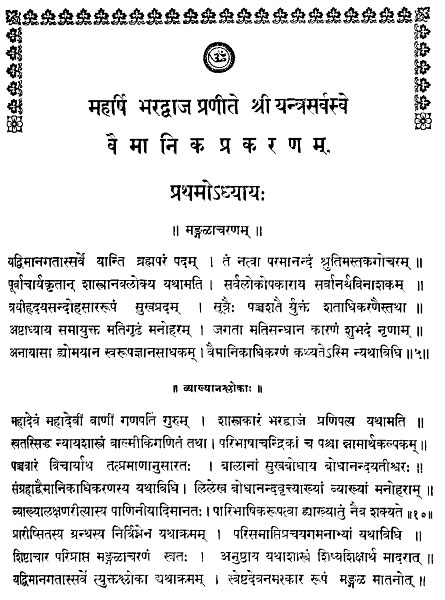 The following are page images of the first ten pages of the Sanskrit text of the Vymaanika Shastra.