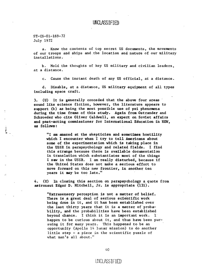 but the main thrust of their initial endeavour was the use of ESP and telepathy to read an enemy’s mind. The aim was the
